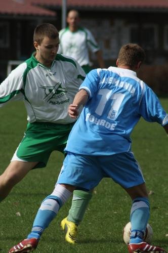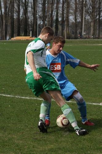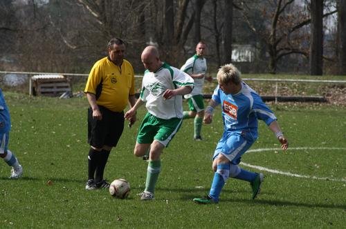 Bei annähernd sommerlichen Temperaturen reiste der Tabellenführer Turbine Golzow zum unmittelbaren Verfolger Alemania Fohrde.Pünktlich um 13:00 Uhr pfiff Schiedsrichter Sven Ziehl das Spitzenspiel der 3. KK an. In den ersten Minuten war jedoch nicht viel von beiden Mannschaften zu sehen, da sich beide Seiten zunächst darauf beschränkten sicher in der Verteidigung zu stehen und auf Fehler des Gegners zu lauern. Die erste Möglichkeit zur Golzower Führung besaß René Zieba - jedoch konnte er den Ball aus aussichtsreicher Position nicht im Tor unterbringen. Golzow bemühte sich weiterhin Druck auf den Gegner aufzubauen- dies gelang auch recht gut, da die Zweikämpfe angenommen wurden und weiter versucht wurde die Fohrder Spieler zu beschäftigen. Kurz vor Ende der 1. HZ spielte die Golzower Hintermannschaft auf Abseits, der Schiri pfiff zum entsetzen nicht, so kam der Angreifer der Alemania zum Torschuss. Keeper Denny Hörske konnte den Ball nicht festhalten und ein freistehender Angreifer der Heimmannschaft bedankte sich mit dem 1:0. Halbzeit. Kurz nach Wiederbeginn die nächste Schrecksekunde, der Fohrder Zimmermann flankte den Ball aus ca. 40 Metern in Richtung Golzower Gehäuse - aber Hörske war zur Stelle und konnte den Ball auf Kosten einer Ecke klären. Auch im weiteren Spielverlauf gestaltete sich das Spiel offen. Nach einer scharf vors Tor geschlagenen Flanke war René Zieba zur Stelle und köpfte den Ball ins Netz. Ausgleich! Turbine drückte nun auf den Führungstreffer. Stephan Brosch wurde gut über die linke Seite freigespielt und seine verunglückte Flanke segelte über den Fohrder Schlussmann hinweg zur Führung ins Tor. Fohrde versuchte nun mehr sich Offensiv ins Spiel einzubringen. Nach einem vermeintlichen Foulspiel entschied der Unparteiische auf Freistoß. Der eher harmlos getretene Freistoß schlug - unter fleißiger Mithilfe der Sonne - im langen Eck ein. Nun waren die Gäste geschockt und hätten umgehend nach dem Ausgleich in Rückstand gehen müssen, jedoch scheiterte der Fohrder Spieler an seinem eigenen Unvermögen - indem er den Ball nicht im leeren Kasten unterbringen konnte. Golzow legte nun nochmal zu und erarbeitete sich einige Standards - jedoch kam nichts zählbares dabei heraus. So liefen die Gäste nach eigenem Eckball in einen Konter der Hausherren. Der Alemanen-Stürmer lief der Gästeabwehr davon und Keeper Hörske brachte diesen unsanft im 16'er zu Fall. Den berechtigten Elfmeter verwandelte der Spieler sicher. Noch im Freudentaumel der Fohrder Mannschaft ging Abwehrspieler Rehfeld unfreiwillig zu Boden. Der Fohrder Spieler Bleiß lies sich trotz Führung seines Teams zu einer Tätlichkeit hinreißen und sah folgerichtig die Rote Karte. Dieser Umstand beflügelte die Golzower, so dass kurz vor Spielende der zuvor eingewechselte Lucke im Strafraum gefoult wurde. Den fälligen Strafstoß verwertete René Zieba zum 3:3. Golzow wollte nun noch den Siegtreffer erzielen, jedoch waren die 90 Minuten vorüber, so dass sich beide Teams mit jeweils einem Punkt begnügen mussten. Am nächsten Spieltag erwartet Turbine die Reserve von Empor Brandenburg.(krug)